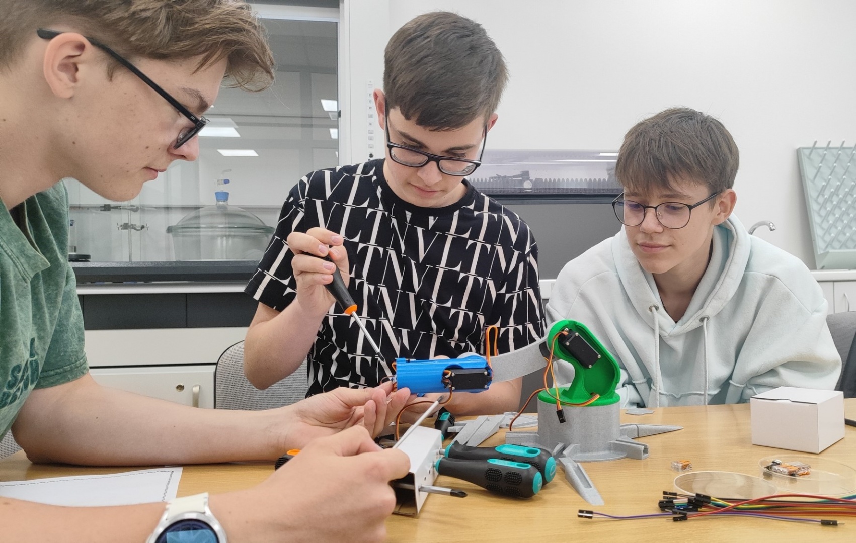 Mentoriaus dr. Sauliaus Niauronio vestose robotikos dirbtuvėse moksleiviai susipažino su litavimo procesu, dirbo su paviršinio montažo elektronikos komponentais, Python programavimo kalba kūrė daiktų interneto principais veikiančius robotus, kurie autonomiškai judėjo aplinkoje ir Wi-Fi ryšiu siuntė jutiklių duomenis.