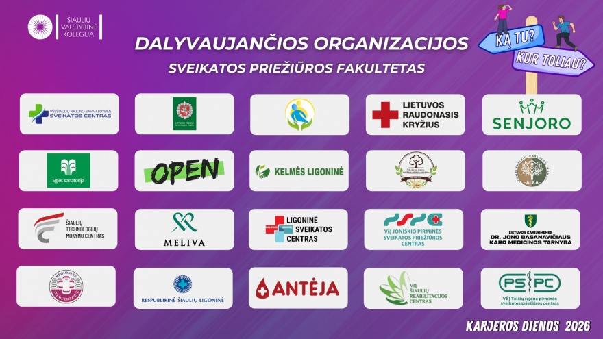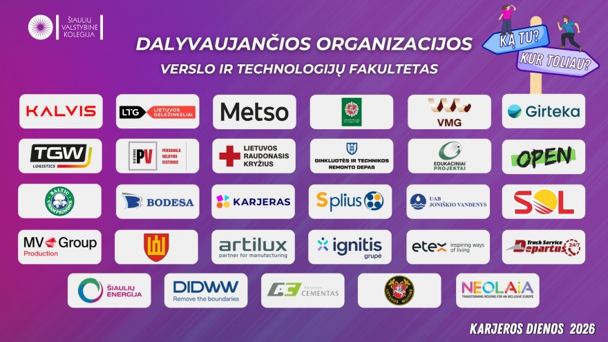 Šiaulių valstybinė kolegija vasario 9–13 dienomis organizuoja renginių ciklą „Karjeros dienos 2026. Ką tu, kur toliau?“. Šių renginių tikslas – skatinti dalyvių asmeninį augimą, plėsti žinias ir suteikti praktinių įžvalgų apie karjeros galimybes ir darbo rinkos poreikius.