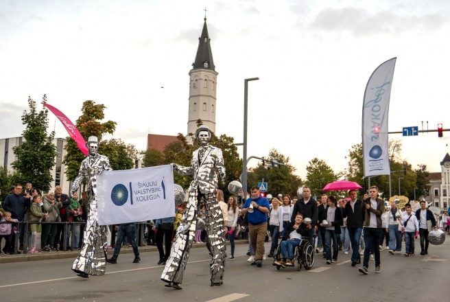 Miesto šventės renginiuose kvietėme aktyviai dalyvauti ir Šiaulių valstybinės kolegijos bendruomenės narius. Rugsėjo 12-osios vakarą su gausiu būriu šiauliečių kolegijos atstovai dalyvavo šventinėje eisenoje. Kaip skelbia organizatoriai, šiemet tradicinė eisena buvo rekordiškai gausi – joje žygiavo beveik 7000 dalyvių iš 108 įstaigų, o eiseną pratęsė įspūdinga motorizuota kolona – 250 transporto priemonių iš 40 organizacijų. Eisenoje dalyvavę šiauliečiai ir miesto svečiai, pasipuošę vėliavomis, įvairiais spalvingais akcentais, sukūrė įsimintiną reginį, liudijantį bendrystę ir miesto šventės gyvybingumą.