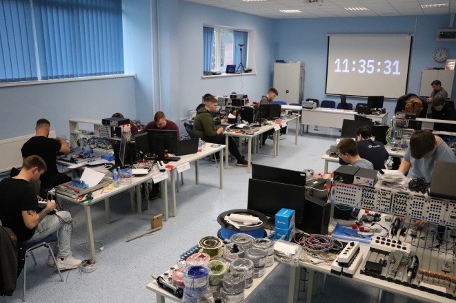 Dalyviai konkurso metu turėjo sujungti pneumatinius, elektros komponentus, užprogramuoti valdiklį.